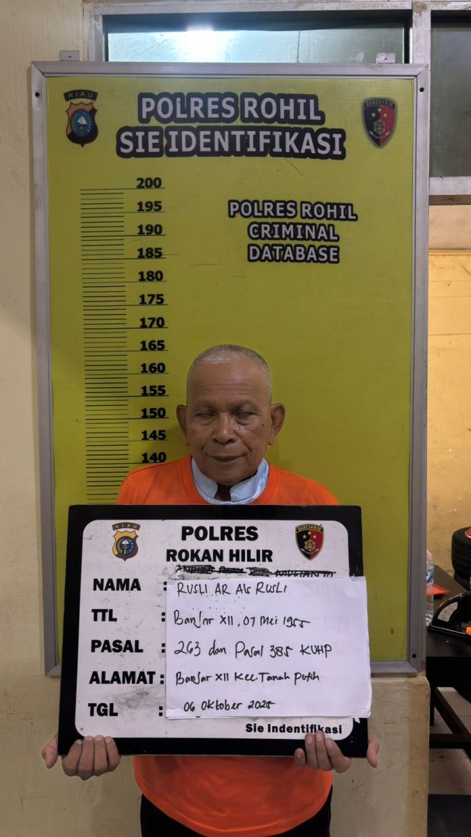 Kapolres Rohil AKBP Isa Imam Syahroni SH, SIK, MH melalui Kasat Reskrim AKP I Putu Adi Juniwinata SIK, MH disampaikan Kanit Tipikor IPTU Subiarto Tampubolon SH,MH membenarkan terkait penahanan Mantan Lurah Banjar XII (A) Senin 06 Oktober 2025 berdasarkan laporan Zamzami AF Alias Amin dengan nomor : LP/B/123/VII/2025/SPKT/POLRES ROKAN HILIR/POLDA RIAU, tanggal 04 Juli 2025.