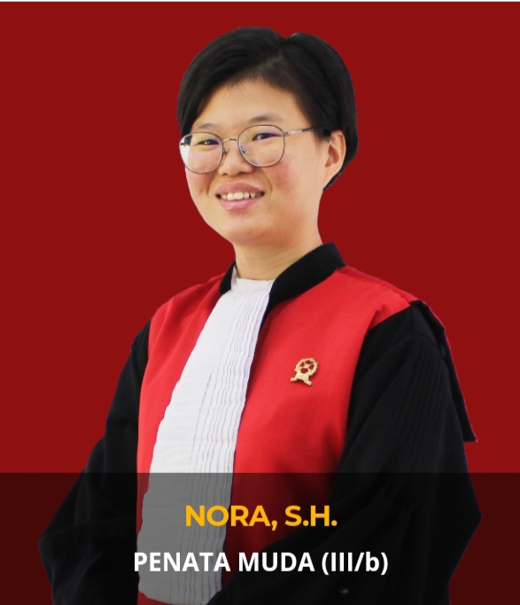 Nora SH merupakan Hakim Tingkat Pertama Pengadilan Negeri Rokan Hilir dengan golongan Penata Muda (III/b) dan Pendidikan : S1 ILMU HUKUM - UNIVERSITAS KATOLIK PARAHYANGAN dan penempatan pertama sebagai Calon Hakim di Pengadilan Negeri Rokan Hilir.