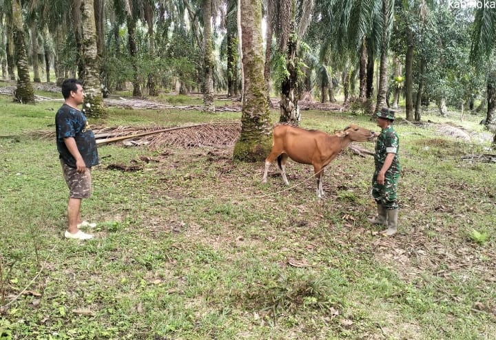 BASIRA -- Menjelang Lebaran Idul Fitri 1447 Hijriah tahun 2026 yang tinggal hitungan hari ini, Babinsa Koramil 03/Bgs Rohil, Serka Edward Aritonang melakukan pengecekan terhadap Penyakit Mulut dan Kuku (PMK) pada hewan ternak milik warga.