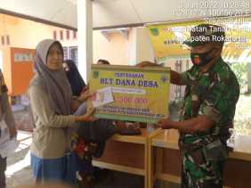Bersama Bhabinkamtibmas dan Perangkat Desa, Babinsa Koramil 02/TP Dampingi Penyaluran BLT