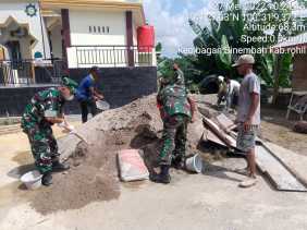 Bersama Warga, Personil Koramil 03/Bgs Goro Bangun Mushola