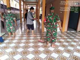 Tingkatkan Silaturrahmi, Babinsa Koramil 03/Bgs Bantu Pengurus Bersihkan Mesjid