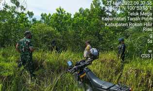 Akhir Pekan, Babinsa Koramil 02/TP dan Petugas Keamanan Lakukan Patroli Karhutla Bersama
