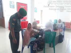 Babinsa Koramil 02/TP Kawal Serbuan Vaksinasi di Puskesmas