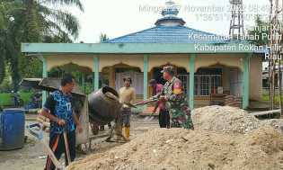 Tingkatkan Kemanunggalan, Babinsa Koramil 02/TP Bersama Warga Goro Cor di Mesjid