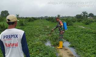 Lagi, Babinsa Koramil 02/TP Dampingi Hanpangan Semangka Semprot Hama
