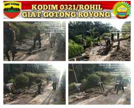 Babinsa Koramil 02/TP Goro Bersama Warga Perbaiki Jalan