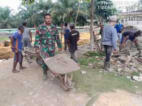 Bangkitkan Tradisi Lama, Babinsa Koramil 02/TP dan Warga Goro Pembangunan Mesjid