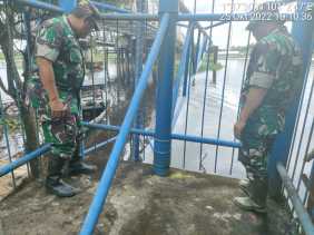 Antisipasi Banjir, Bati Tuud Koramil 02/TP Cek Debit Air Sungai Rokan