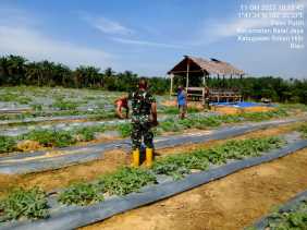 Babinsa Koramil 03/Bgs Kembali Rutinkan Pendampingan Perawatan Tanaman Semangka