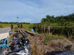 Sambut Hari Jadi Rohil Ke 23 Warga Sei Buaya,Tanam Kangkung di Jalan Yang di Lintasi Truk Odol