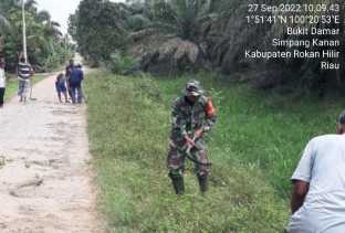 Babinsa Koramil 03/Bgs Goro Bersama Warga Bersihkan Jalan