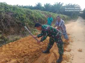 Bersihkan Jalan, Babinsa Koramil 03/Bgs Goro Bersama Warga
