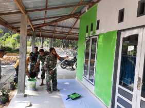 Bersama Warga, Personil Koramil 03/Bgs Laksanakan Goro Pengecatan Musholla