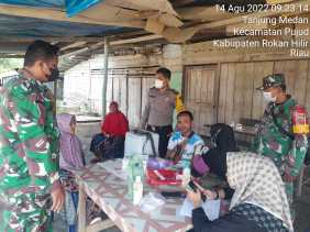 Bersama Polsek, Babinsa Koramil 02/TP Kembali Dampingi Vaksinasi di Puskesmas