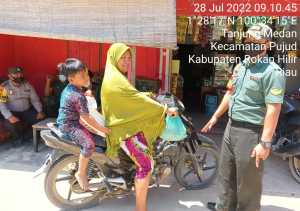 Babinsa Koramil 02/TP dan Polsek Pujud Rutin Tegakkan Prokes