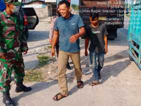 Personil Babinsa Koramil 02/TP Kembali Tegakkan Prokes di Jalan Raya