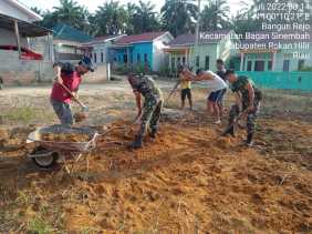 Personil Koramil 03/Bgs dan Warga Goro Bersihkan Sekitar Sarana Olahraga