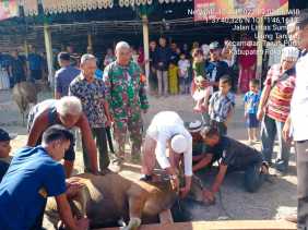Komsos di Kampung Pancasila, Babinsa Koramil 02/TP Bahu-Membahu Dengan Warga Potong Qurban