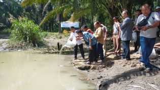 Bersama Masyarakat Lintas Provinsi, DLAB I PTPN III Tebar Bibit Ikan di Kali Wates