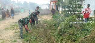 Bersama Warga, Babinsa Koramil 03/Bgs Kembali Goro Bersihkan Jalan