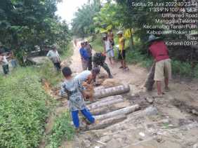 Akibat Tergerus Air, Babinsa Koramil 02/TP dan Warga Kembali Goro Perbaiki Jalan