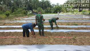Babinsa Koramil 03/Bgs Dampingi Petani Pengolahan Hanpangan Tanaman Semangka