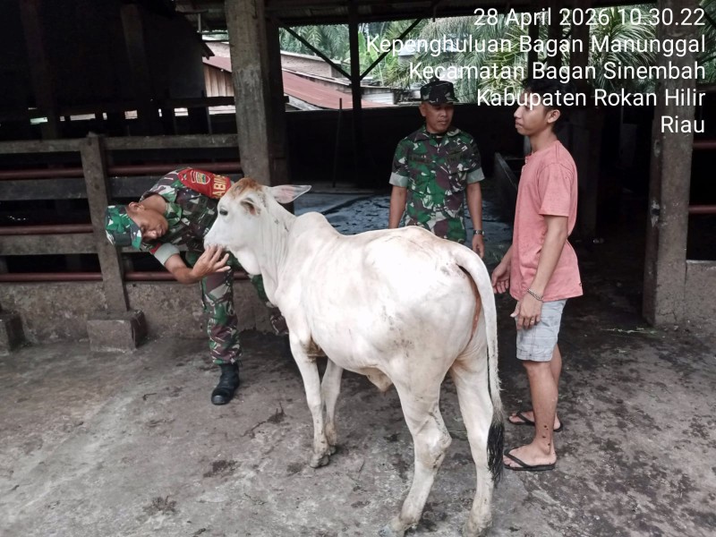Pantau Kesehatan Ternak Warga, Babinsa Koramil 0321-03/Bgs Rohil Datangi Kandang Sapi