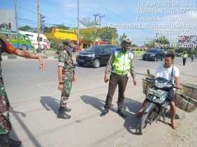 Tegakkan Prokes, Babinsa Koramil 03/Bgs dan Polisi Sasar Warga di Jalinsum