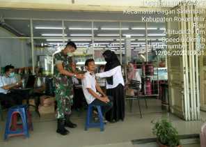 Akhir Pekan, Babinsa Koramil 03/Bgs dan Polri Tetap Dampingi Vaksinasi Puskesmas