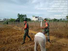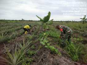 Babinsa Koramil 02/TP dan Petani Terus Bersihkan Gulma di Hanpangan
