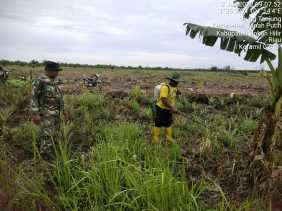 Babinsa Koramil 02/TP dan Petani Semprot Gulma di Hanpangan