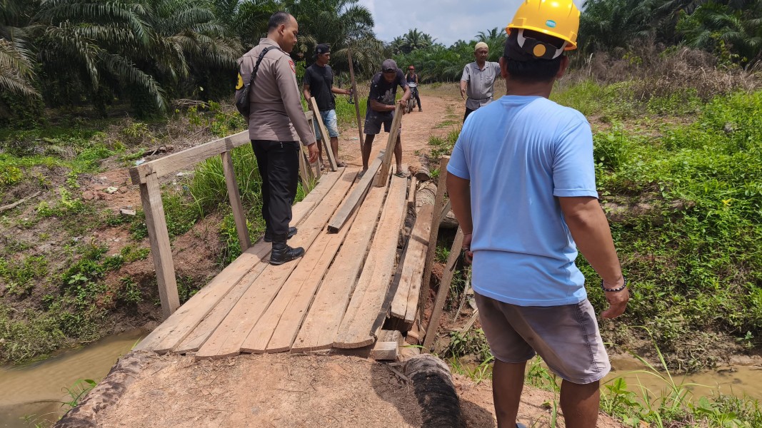 Bersama Warga, Bhabinkamtibmas Membangun Jembatan di Jalan Ring Road Bagan Batu