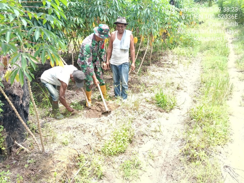 Sukseskan Hanpangan, Babinsa Koramil 0321-03/Bgs Rohil Bersama Warga Kembali Dampingi Perawatan Ubi Kayu